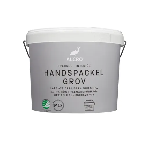 Håndsparkel Grov er en grovkornet lettsparkel for innendørs bruk. Sparkelmassen er beregnet for reparasjon og sparkling av tykke lag på puss, betong, lettbetong og platematerialer. Håndsparkel Grov har meget god fyllevne. Sparkelen er smidig og grå i fargen. Sparkelen oppfyller kravene til CE-merking i henhold til EN 15824.